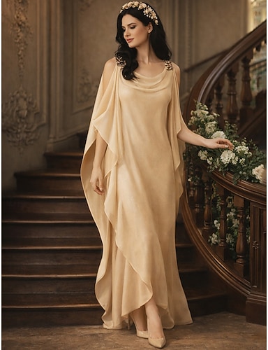 Schlauchkleid Bodenlang Partykleid Cocktailkleid Kleid für Hochzeitsgäste Brautmutterkleid Halbarm Juwelenhals Elegant Übergröße Hochzeitsgast Chiffon mit Perlenstickerei Kaskadierende Rüschen