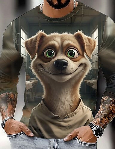 Herren Tiermotiv 3D T Shirt Langarm T-Shirt 3D-Druck Rundhalsausschnitt Hemd Mode Basic Straße Lässig Täglich Grau Sommer Frühling Bekleidung S M L XL XXL XXXL