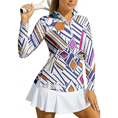 Damen Geometrisch Sporthemd Golf-Poloshirt Tennis Shirt Tennis-T-Shirt Langarm Reißverschluss Blumen UPF50+ UV-beständig Hohe Elastizität Feuchtigkeitsableitend Atmungsaktiv Tennis Golfspiel