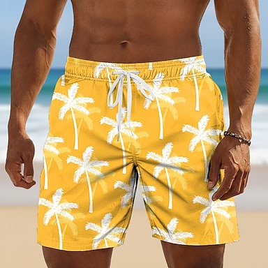 Herren Kokospalme Palme Tropische Pflanzen Badehosen Badeanzüge Badeshorts Boardshorts Mittlere Taille Hawaiianisch Outdoor Urlaub Alltagskleidung Seitentaschen Netzfutter Elastischer Kordelzug in