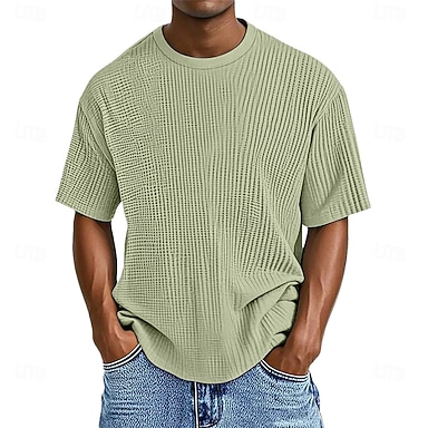 Herren Waffel T-Shirt T-Shirt Kurzarm Rundhalsausschnitt Sommer Einfarbig Texture Mode Designer Lässig Tasche Gestrickt Outdoor Lässig Täglich Blau Hellgrün Violett Top T-Shirt für Herren
