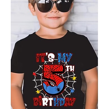 100% Baumwolle Kinder Jungen Schwarz Grafik Spinnennetz Es ist mein 5. Geburtstag T-Shirt Bluse Rundhalsausschnitt Kurzarm Täglich Outdoor Geburtstag Mode Streetwear Designer Drucken Sommer Frühling