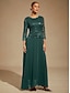 Meerjungfrauenschnitt Bodenlang Abendkleid Dreiviertelarm Halbarm Illusionsausschnitt Juwelenhals Elegant Vintage Party Formell Hochzeitsgast Spitze Stretchstoff Brautmutterkleid mit Schärpe / Band