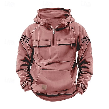 Herren Kapuzensweatshirt Viertelreißverschluss Kapuzensweatshirt Schwarz Rosa Wein Blau Grün Mit Kapuze Flagge Kordelzug Tasche Sport & Outdoor Täglich Ferien Streetwear Basic Lässig Frühling Herbst