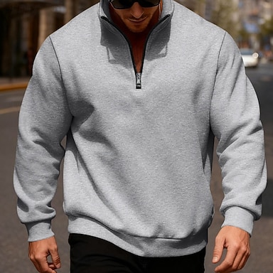 Herren Sweatshirt Fleece-Sweatshirt Viertelreißverschluss Sweatshirt Aprikose Schwarz Weiß Wein Rote Halber Reißverschluss Einfach Sport & Outdoor Täglich Ferien Polyester Streetwear Basic Lässig