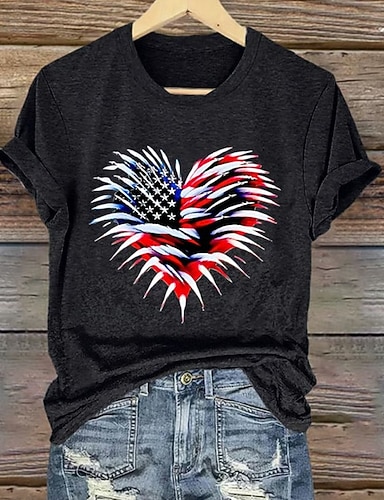 Unabhängigkeitstag patriotisches Damen T-Shirt Grafik Flagge vintage stilvoll klassisch kurzarm Rundhals reguläre Oberteile täglich Wochenende Druck blau schwarz weiß rot grün Sommer Frühling