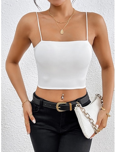 Damen Tank Top Bluse Camisole-Tanktop Einfach Stilvoll Sexy Modern Ärmellos Quadrathals Crop Tops Täglich Ferien Ausgehen Schwarz Weiß Wein Rote Braun Sommer Frühling