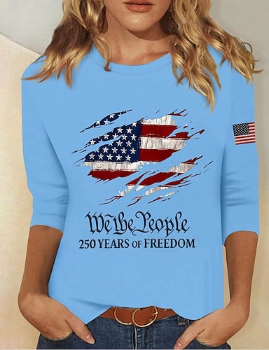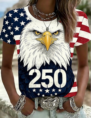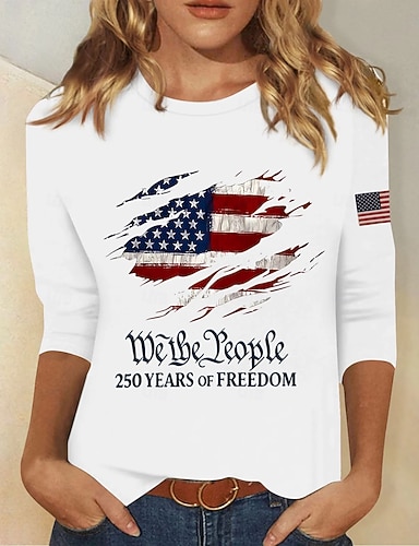 Amerikanischer Unabhängigkeitstag Damen T Shirt Druck Blumen Grafik Flagge Stilvoll Klassisch Lässig Kurzarm Rundhalsausschnitt Rundhals Normale Oberteile Lässig Täglich Weiß Rote Sommer Frühling