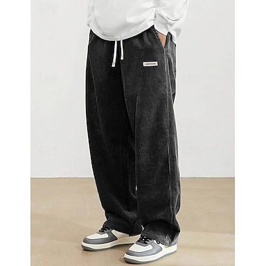 Herren Hose Cordhose Baggy-Hosen Freizeithose Gerade geschnittene Sweatpants Kordelzug Elastischer Bund Einfarbig Komfort Volle Länge Täglich Heim Outdoor Mode Schick & Modern Schwarz Marineblau