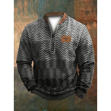 Herren Sweatshirt Viertelreißverschluss Sweatshirt Schwarz Grau Halber Reißverschluss Farbblock Rentier Halber Reißverschluss Druck Sport & Outdoor Täglich Ferien Vintage Streetwear Lässig Herbst