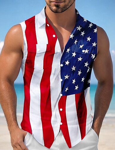 Herren 250. Jahrestag des Unabhängigkeitstages der USA am 4. Juli US Flagge Hemd Knopfhemd Ärmelloses Shirt Ärmellos Patriotisch Ferien Sommer Frühling Umlegekragen Zwei Fronttaschen Weiß