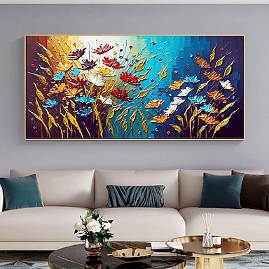 Mintura handgefertigte abstrakte bunte Ölgemälde mit Blumenmuster auf Leinwand, Wandkunst, Dekoration, modernes Blumenbild für Heimdekoration, gerolltes, rahmenloses, ungedehntes Gemälde