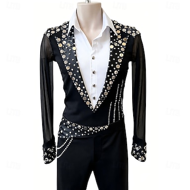 Eiskunstlauf Top Herren Eislaufen Oberteile Schwarz Patchwork Dehnbar Training Wettbewerb Eiskunstlaufkleidung Klassisch Kristall / Strass Langarm Eislaufen Eiskundstlauf