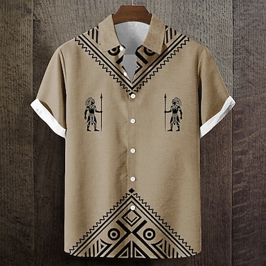 Herren Geometrisches Muster Indische Kultur Indigene Völker Hemd Knopfhemd Kurzarm Vintage-Retro Täglich Outdoor Urlaub Sommer Frühling Umlegekragen 3D-Druck Leinenähnliches Hemd Blau Purpur Khaki
