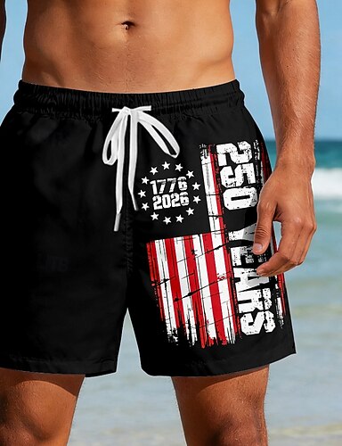 Herren 250. Jahrestag des Unabhängigkeitstages der USA am 4. Juli US Flagge 1776 Badehosen Badeshorts Boardshorts Mittlere Taille Lässig Ferien Seitentaschen Netzfutter Elastischer Kordelzug in der