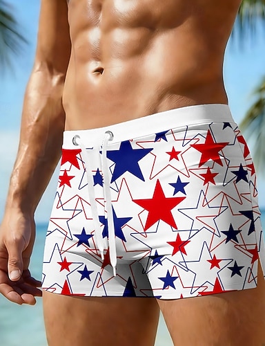 Unabhängigkeitstag Herren US-Flagge Patriotisch Vierter Juli Badehosen Schwimmshorts Boardshorts Mittlere Taille Hawaiianisch Urlaub Seiten Taschen Netzfutter Elastischer Kordelzug Bund