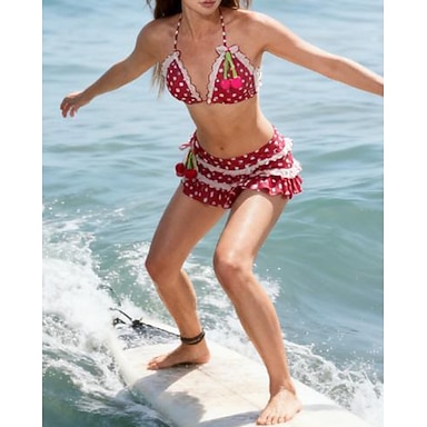 Damen Neckholder-Bikini-Oberteil Badeanzug 2 Teile Patchwork Punkt Kurzes Bein Schnelltrocknend Elastisch Ärmellos Bademode Badeanzug Surfen Strand Schwimmen Sommer