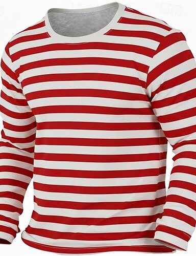 Herren T Shirt T-Shirt Langarmshirt Langarm Rundhalsausschnitt Frühling Herbst Horizontale Streifen Streetwear Stilvoll Lässig Klassisch Täglich Outdoor Karneval Rote Top T-Shirt für Herren