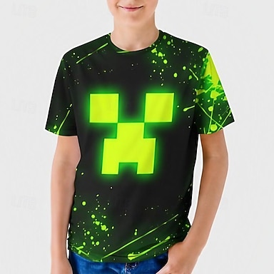 Jungen 3D Graphic T-Shirt Kurzarm Sommer Frühling Modisch Basic kinderkleidung 4-12 Jahre Rundhalsausschnitt Outdoor Casual Täglich Regular Fit