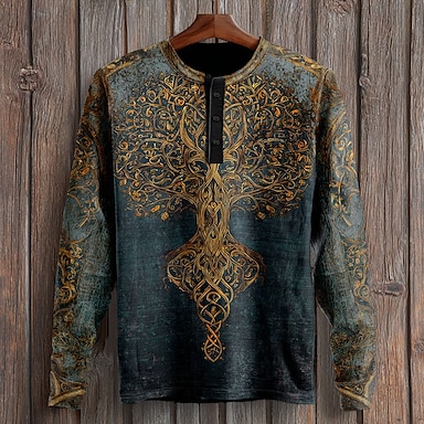 Herren Grafik Baum Retro Henley Hemd Langarm Mode Niedlich Täglich Lässig Ferien Ausgehen Herbst Frühling & Herbst Dunkel Blau Henley Henley T-Shirt