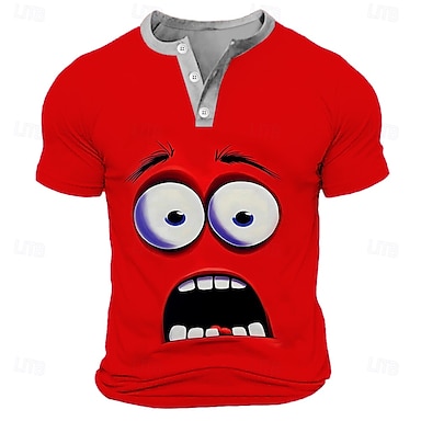 Herren Cartoon Menschliches Gesicht T Shirt Henley Hemd Kurzarm Designer Retro Vintage Lässig Straße Lässig Täglich Sommer Frühling Gelb Grün Rot Blau Purpur Henley Henley T-Shirt