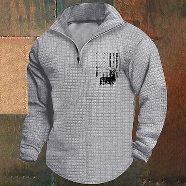 Herren Sweatshirt Waffel-Sweatshirt Viertelreißverschluss Sweatshirt Weiß Wein Armeegrün Khaki Hellgrau Halber Reißverschluss Grafik Druck Druck Viertel Postleitzahl Weihnachten Täglich Ferien Andere