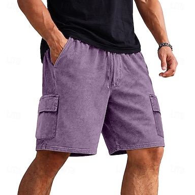 Herren Cargo-Shorts Shorts 100% Baumwolle Freizeitshorts Acid Wash Shorts Tasche Elastischer Bund Einfach Gewaschen Komfort Atmungsaktiv Knielang Lässig Outdoor Strand Urlaub Mode Schwarz Marineblau
