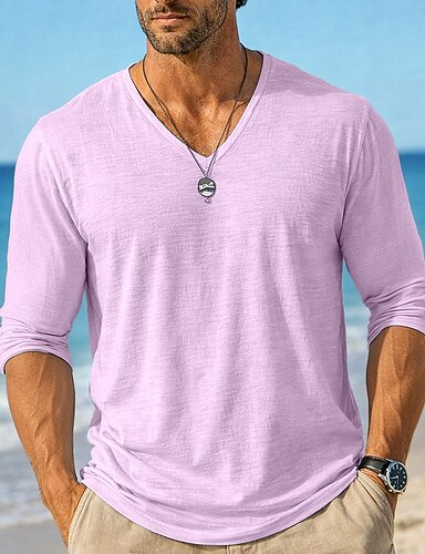 Herren T-Shirt Langarmshirt Leinen-T-Shirt Langarm V Ausschnitt Sommer Frühling Frühling & Sommer Einfarbig Einfach Täglich Lässig Streetstyle Rein Lässig Outdoor Straße Hellblau Meerblau Schwarz Top