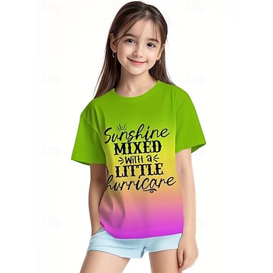 Mädchen 3D Grafik Buchstabe T-Shirt Kurzarm 3D-Druck Sommer Frühling Sport Mode Streetwear Kinder 4-12 Jahre Rundhalsausschnitt Lässig Täglich Outdoor Normale Passform