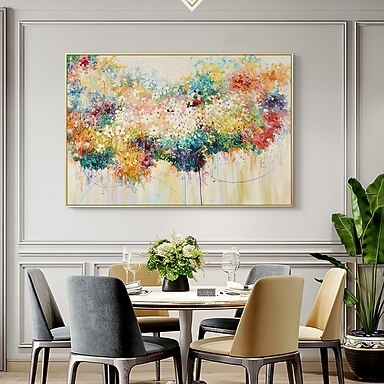Blumen-Ölgemälde auf Leinwand, handgefertigt, abstraktes Rosenblumengemälde, handgemaltes Blumenlandschaftsgemälde, florale Wandkunst, Leinwand, Frühlingsgemälde für Wohnzimmer, Schlafzimmer,