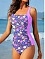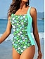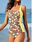 Damen Badeanzug Einteiler Monokini Freche Unterhose Bademode Bauchkontrolle Hohe Taille Rückenfrei Urlaub Strandbekleidung Blumen Grafik U-Ausschnitt Ärmellos Badeanzüge