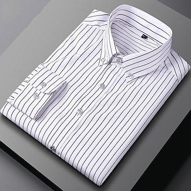 Herren Kleidhemd Durchgeknöpft Hemd Gestreiftes Hemd Kragenhemd Gestreift Hochzeit Arbeit Schwarz Weiß Rote Marineblau Langarm Kragen Bekleidung