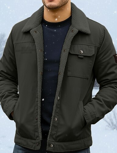 Herren Fleecejacke Cargo-Jacke Arbeitsjacke Formell Heim Windjacke Langlebig Tasche Fleecekragen Herbst Winter Einfarbig Aktiv Vintage Kragen Regulär Marineblau Dunkelgrün Khaki Jacken