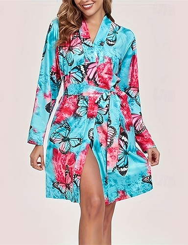 Damen Schlafanzug Freizeitkleidung Nachthemd Mode Lässig Komfort Blumen Grafik Tiermotiv Schnürung Elastischer Bund Täglich Heim Strand Langarm Revers Meerblau Sommer Frühling Herbst Winter Lässiger