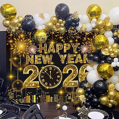 Silvester Poster Türabdeckung Banner für den Außenbereich glückliches neues Jahr 2026 Niedlich 3D Party Wohnheim Jugendzimmer Studentenwohnheim Jungs, Männerhöhle, Studentenwohnheim Hintergründe