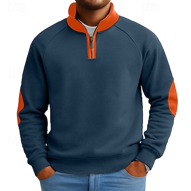 Herren Sweatshirt Pullover Kapuzensweatshirt Pullover Viertelreißverschluss Sweatshirt Denim Blue Schwarz Weiß Gelb Armeegrün Stehkragen Einfach Patchwork Farbblock Lässig Täglich Sport & Outdoor