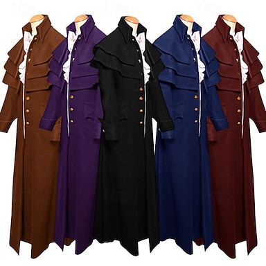 Retro Vintage Punk Gothic Mittelalterlicher Mantel Party Kostüm Prinz Pestdoktor Adliger Unifarbene Festkleidung Männer Ebenezer Scrooge Elf Pirat Steampunk Maskerade Party Erwachsenenmantel