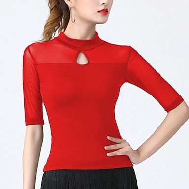Latein-Tanz Sportkleidung Kleid Einfarbig Damen Ausbildung Leistung Halbe Ärmel Hoch Elasthan