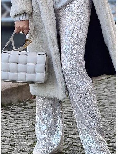Damen Gerade Hosen Mode Streetwear Glitzern Volle Länge Hohe Taille Einfach Schimmernd Bequem Weich Unelastisch Outdoor Party Silber Schwarz Rosa Fuchsie Sommer Frühling Normale Passform