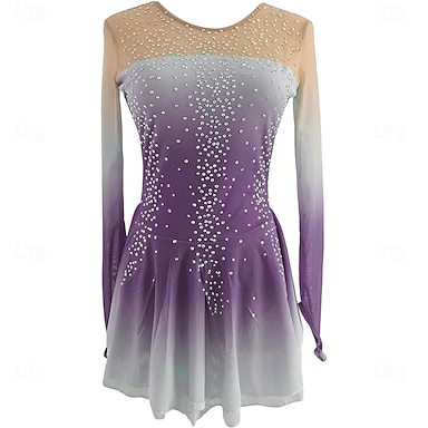 Eiskunstlaufkleid Damen Mädchen Eislaufen Kleid Violett Patchwork Daumenloch Netzstoff Spandex Dehnbar Training Übung Professionell Eiskunstlaufkleidung Thermowarm Kristall / Strass Langarm Eislaufen
