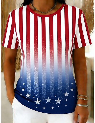 Amerikanischer Unabhängigkeitstag Damen T Shirt T-Shirt Druck Grafik Gestreift Amerikanische Flagge Stilvoll Klassisch Lässig Kurzarm Rundhalsausschnitt Normale Oberteile Täglich Sport Ausgehen Rote
