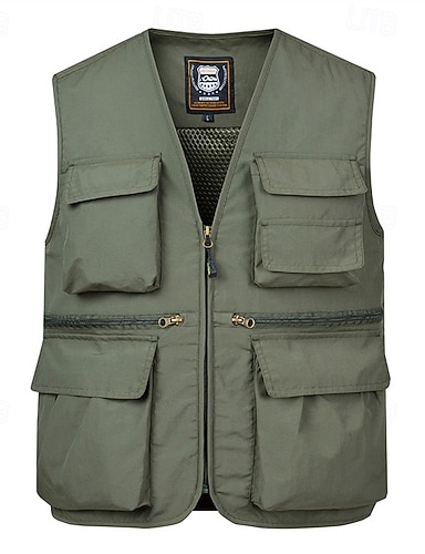 Herren Weste Angelweste Weste für Wanderer Täglich Verabredung Urlaub Modisch Brautkleider schlicht Frühling & Herbst Gitter Tasche Polyester Atmungsaktiv Komfortabel Glatt Reisverschluss V Ausschnitt