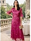 A-Linie Tee-Länge Partykleid Cocktailkleid Kleid für Hochzeitsgäste Brautmutterkleid Halbarm Juwelenhals Elegant Vintage Hochzeitsgast Hochzeitsfeier Spitze mit Spitze Farbblock