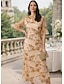 A-Linie Bodenlang Tee-Länge Abendkleid Blumenkleid Cocktailkleider Elegant Vintage Blumen Kurzarm Schulterfrei Gartenparty Hochzeit Tasche Jacquard Tiefer Wasserfall-Rückenausschnitt mit Blumenmuster