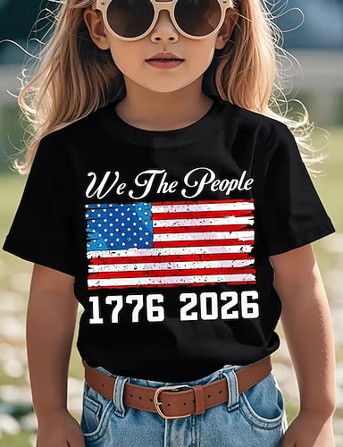 100% Baumwolle Kinder Mädchen Schwarz Weiß Grafik Freiheitsstatue 250-jähriges Jubiläum Amerikanische US-Flagge für Kinder T-Shirt Rundhalsausschnitt Kurzarm Urlaub Sport & Outdoor Alltagskleidung