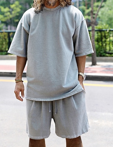 Herren Trainingsanzug Outfit-Set Kurze Hosen Rundhalsausschnitt Outdoor Täglich Sport Tasche Kordelzug 2 teilig Glatt Schwarz Weiß Marineblau Polyester Sportkleidung Klassisch Brautkleider schlicht