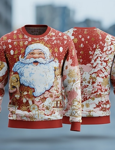 Hässlicher Weihnachtspullover Herren Weihnachtsmann 3D-Druck Pullover Strickware Rundhalsausschnitt Lässig Outdoor Weihnachtsgeschenke Urlaub warm halten Langarm Herbst Winter Rote Blau Grün