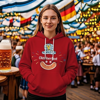 Kapuzensweatshirt Druck Lässig Bayerisch Bischofsärmel Fronttasche Grafik für Damen Erwachsene 3D-Druck für Karneval Oktoberfestbier Urlaub Party