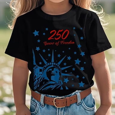 100% Baumwolle Kinder Mädchen Blau Schwarz Weiß Grafik Adler 250-jähriges Jubiläum T-Shirt Rundhalsausschnitt Kurzarm Urlaub Sport & Outdoor Alltagskleidung Aktiv Mode Lässig Drucken Sommer