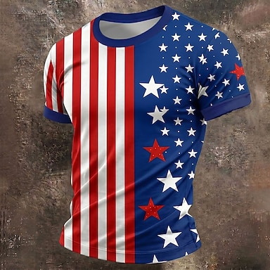 4. Juli 2026 250. Herren Einfarbig Amerikanische US-Flagge T Shirt Kurzarm T-Shirt 3D-Druck Rundhalsausschnitt Hemd Vintage-Retro Patriotisch Täglich Festival Blau Schwarz Burgunderrot Sommer Frühling